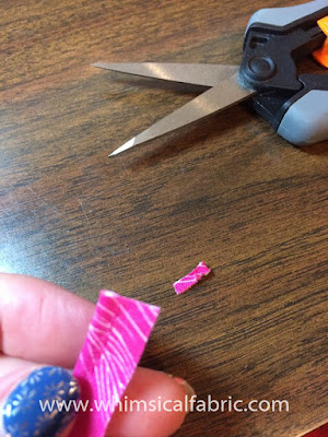 17. If you will be adding piping to your armscye now is the time. First though we want to trim the cording out of the what will be the seams. This allows the seams to lay flat when we sew them. Grab your piping and clip the end of nice and straight.