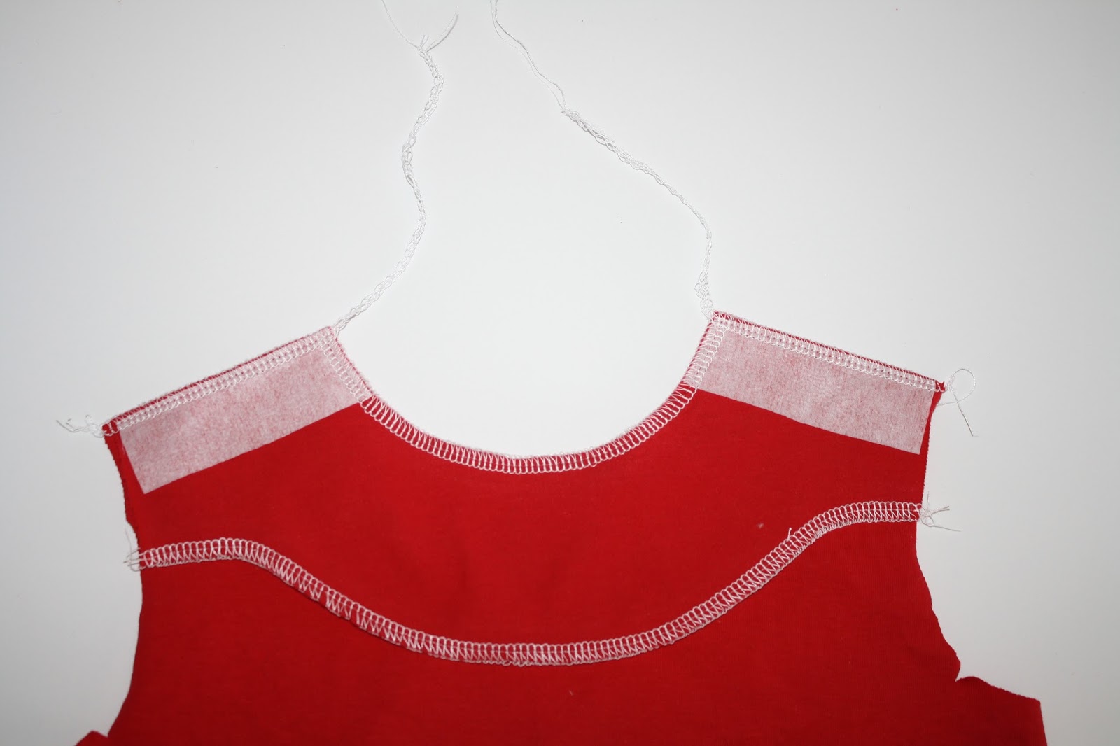 7. Turn your facing to the inside of the shirt, rolling your seam towards the inside so the seam line is not visible from the outside of the shirt. Press well then pin the facing in place. Stitch the facing in place in the same manner as your top facing.